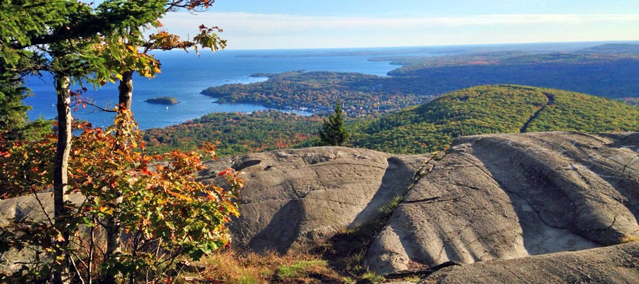 Camden, Rockport and Lincolnville offer an abundance of public land and a day hike in the Camden Hills State Park will not disappoint. This mostly wooded region covers 5,500 acres of land and is marked with intersecting trails offering hiking for every age and ability. Many popular hikes such as Maiden’s Cliff and Mt. Battie offer expansive views of the hills, lakes, oceans and islands.