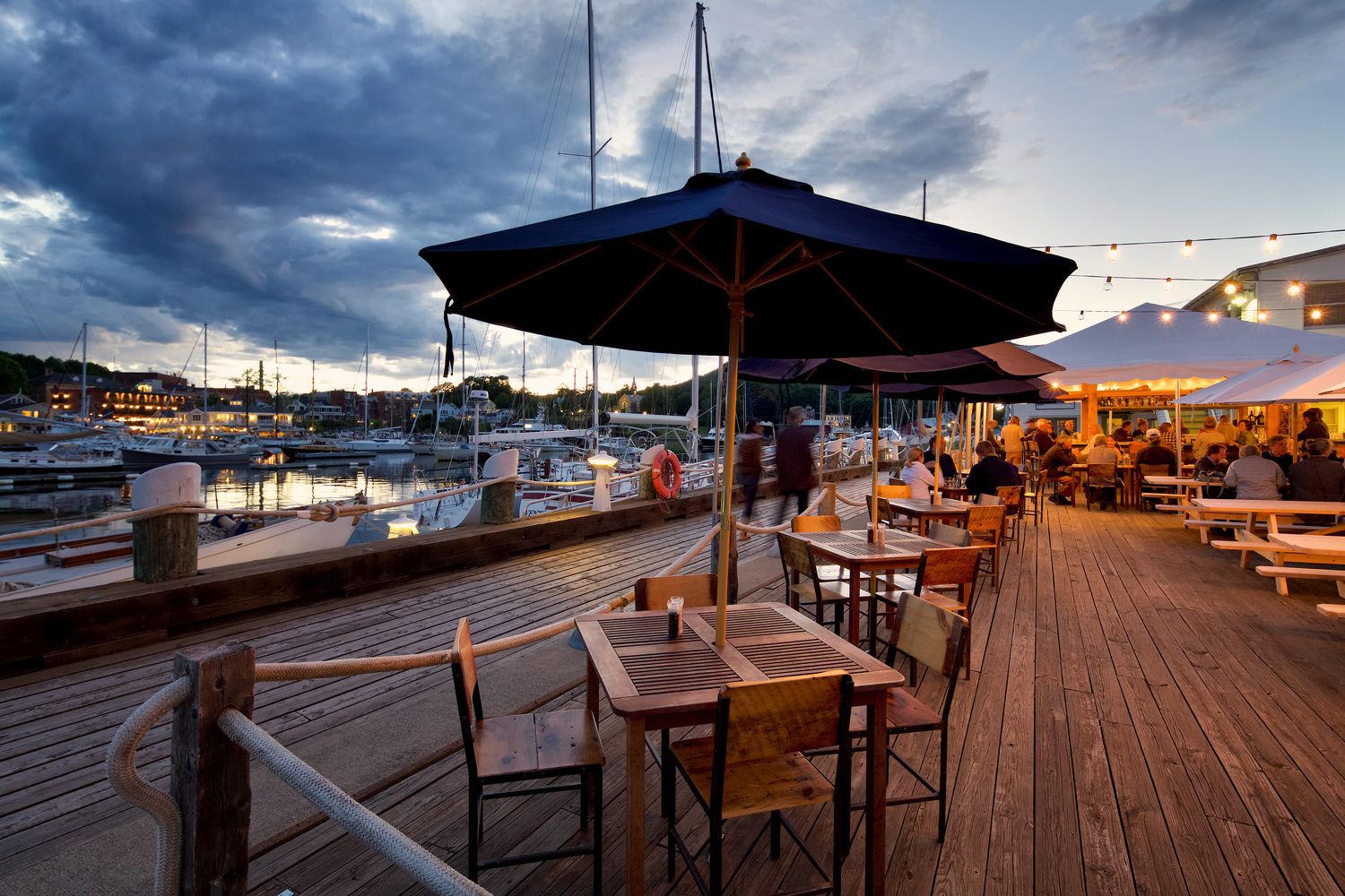 Visitors must enjoy lobster and clams, and all the fresh, local food available in the area’s fine restaurants. Rhumb Line in Camden has updated many of the classics (think fish tacos and a perfect lobster roll) and features a delicious raw bar and craft cocktails. Pull your boat right up to the dock if there is room or call the Lyman-Morse launch (VHF channel 71) for transport from a mooring.