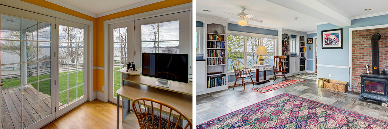 I love my office, which has a 270-degree view of the lake and fields. I also love the family room with lake/field views and a comfy Hearthstone stove for cold evenings and days.