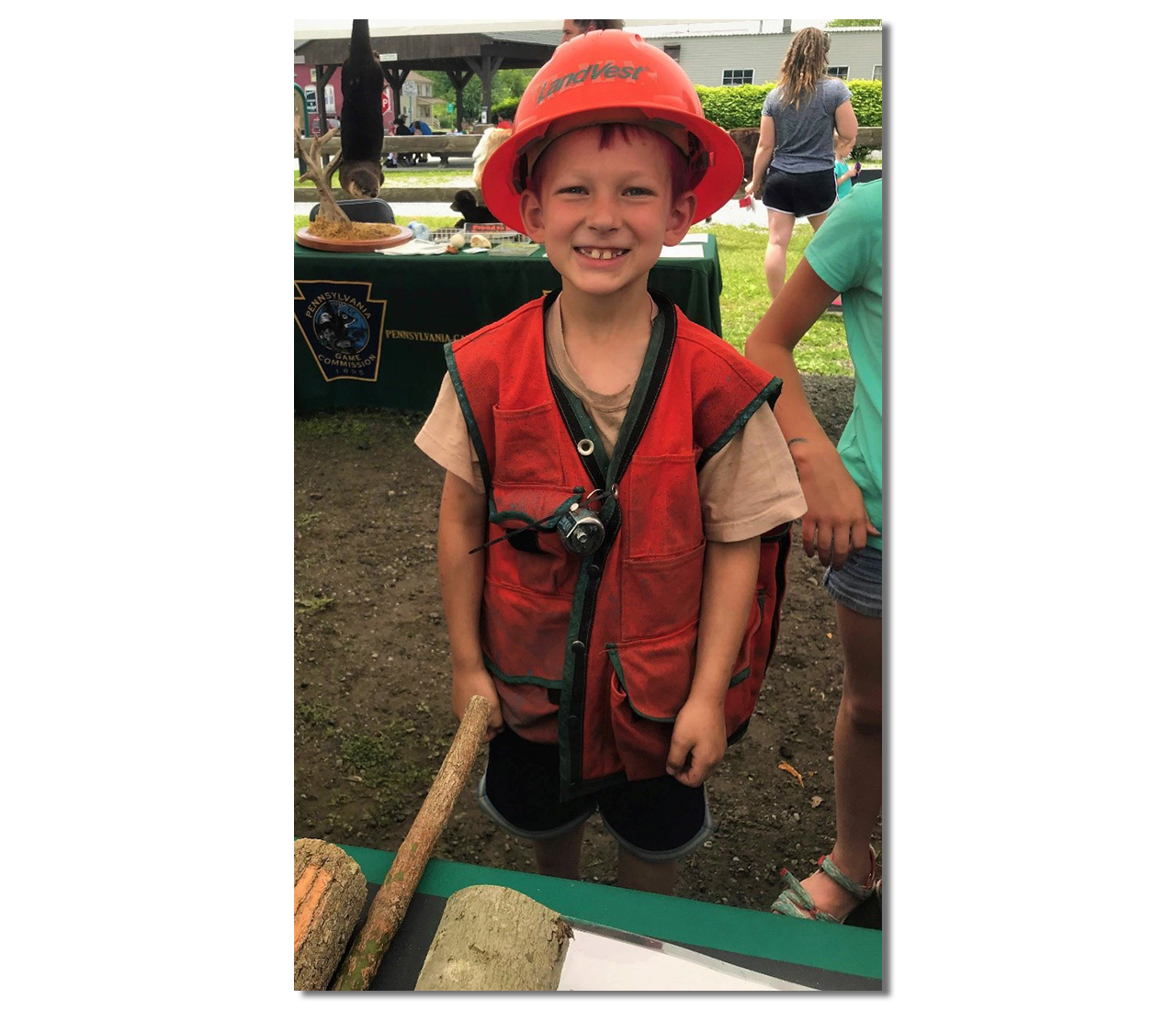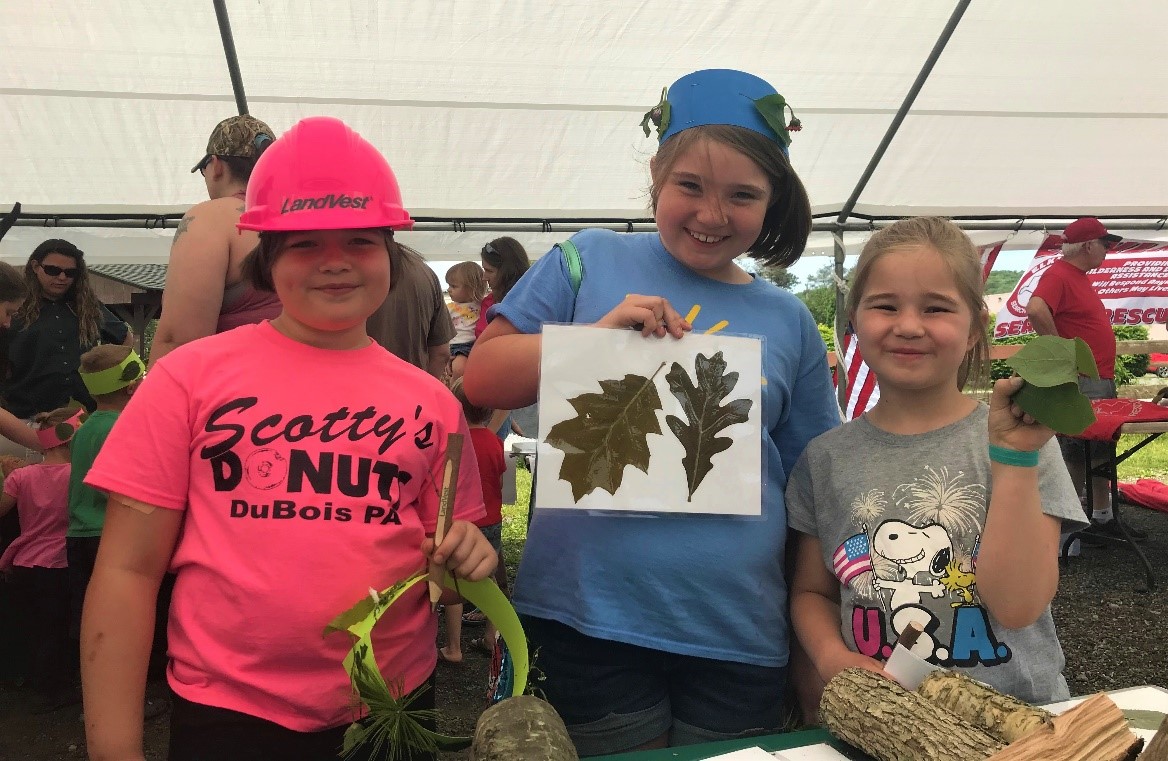 The event took place at the Ridgway trailhead where local agencies, organizations, and private companies including the Game Commission, U.S. Forest Service, Penn State Extension, and LandVest all staffed tables equipped with hands-on environmental-related activities for kids and adults to enjoy. Representatives from LandVest showed attendees leaf, twig, and stem cross-sections, as well as cordwood samples, while also highlighting the importance of managing forestland. It was apparent how young minds are like sponges that can absorb new information readily when intrigued. White Oak leaves were associated with ghosts adorned with white sheets because of a White Oak leaf’s rounded lobes. Sassafras leaves reminded children of dinosaur feet which always evoked a chuckle. A scratch-and-sniff identification game left the children in total awe after smelling Yellow Birch twigs that emitted a refreshing winter mint aroma: Black Cherry twigs with leaves similar to Yellow Birch that reeked of cyanide, and Sassafras twigs that reminded them of a sweet, crisp apple. Adults also made connections to trees on their properties and were excited to identify ones in their backyards with their families.