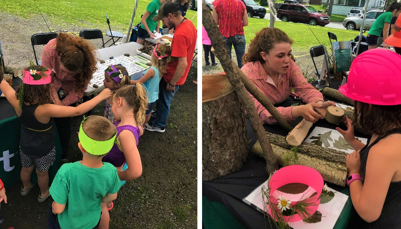 It was encouraging to watch the children’s colorful faces express fascination through their gasps and wide smiles when learning how to age a stem by counting the rings on a Yellow Poplar and Sugar Maple cross-section, often referred to as cookies. Many were blown away by the 6-year-old Yellow Poplar having a larger diameter than the smaller 60-year-old Sugar Maple. Most had already learned this in school that it is not the size, but the growth rings that give away the tree’s age. However, all the kids were eager to count the rings with the LandVest representative, forest technician Rebecca Holdowsky, and learn about how a larger sun-loving species such as Yellow Poplar could be strikingly younger than a shade-tolerant, slow-growing Sugar Maple. A whole group of children wanted their diameters measured using the forestry tool, a diameter tape, and were delighted to find out they’re all 6- to 7-inch “trees.”