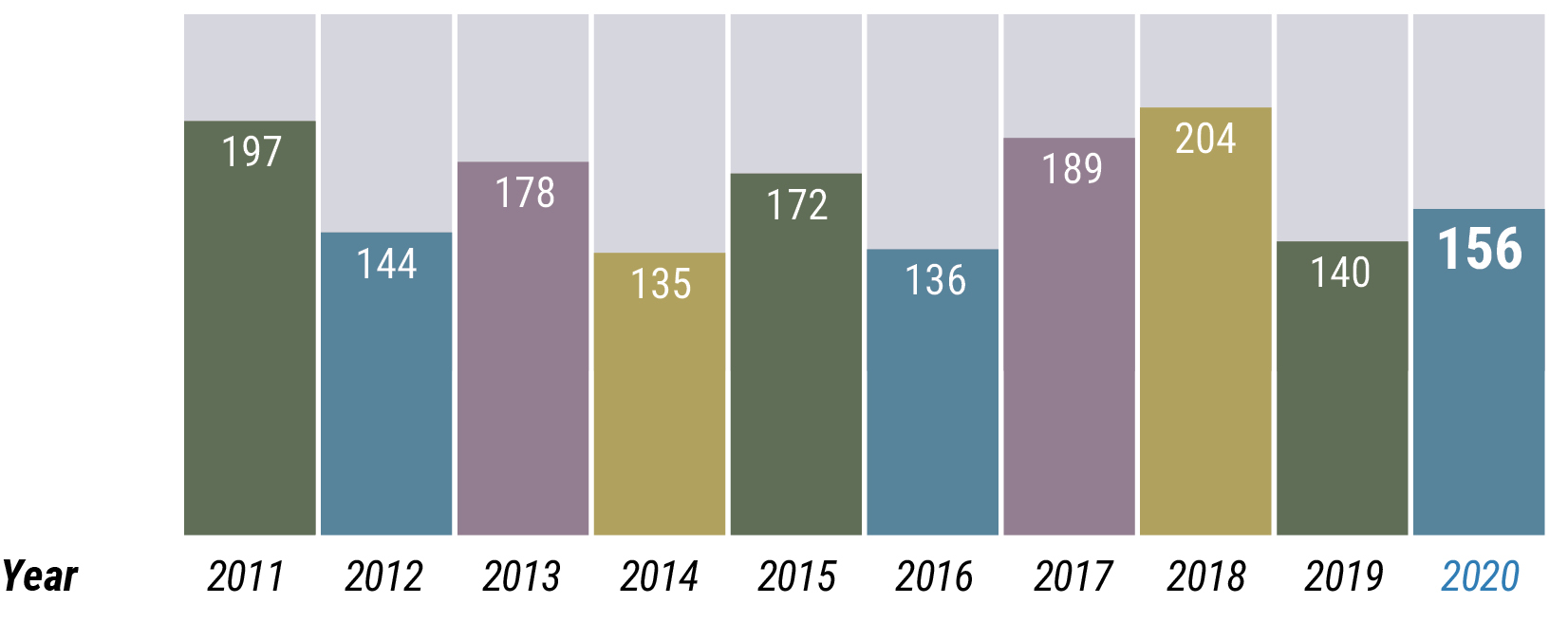 Since 2010 there have been, on average, 193 listings at the end of the first quarter. The effect of COVID-19 is being felt with many properties temporarily withdrawn from the market or delayed in market launch.