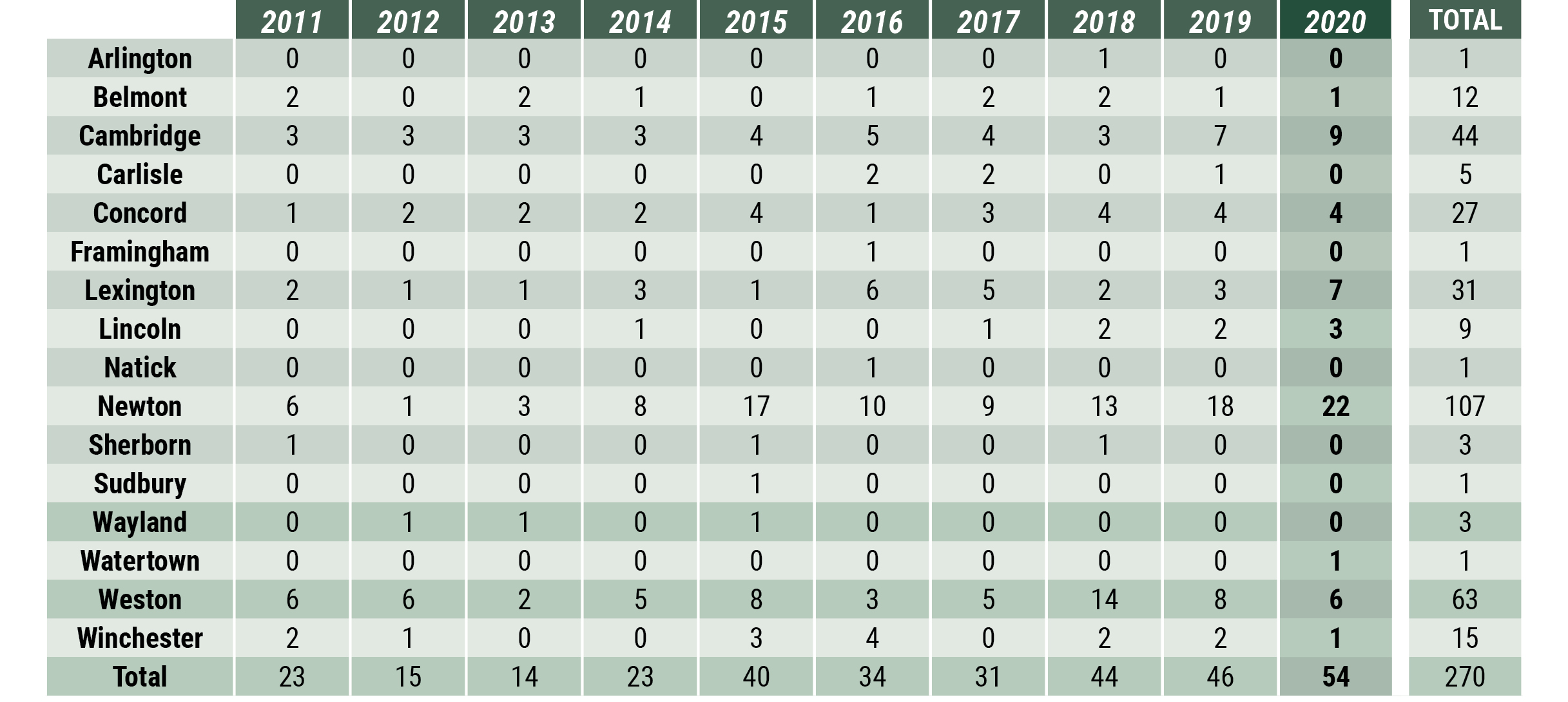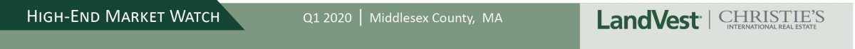 Nine of the 54 cities and towns in Middlesex County, Massachusetts, had high-end sales in the first quarter of 2020. Cambridge, Lexington, Lincoln, and Newton improved over their performance in the first quarter of 2019. Weston fell back slightly to 6 sales compared to 8 last year and 14 in the previous year. Watertown had its first residential sale over $2,000,000.
